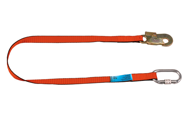 Tento plochý Lanyard je vyroben z polyesteru šíře 25 mm. Na jednom konci lanyardu je oko s karabinou (světlost 19 mm) a v druhém oku je malá spojka (světlost 21 mm). Bez použití tlumiče pádu by délka lanyardu neměla překročit délku 1 m.