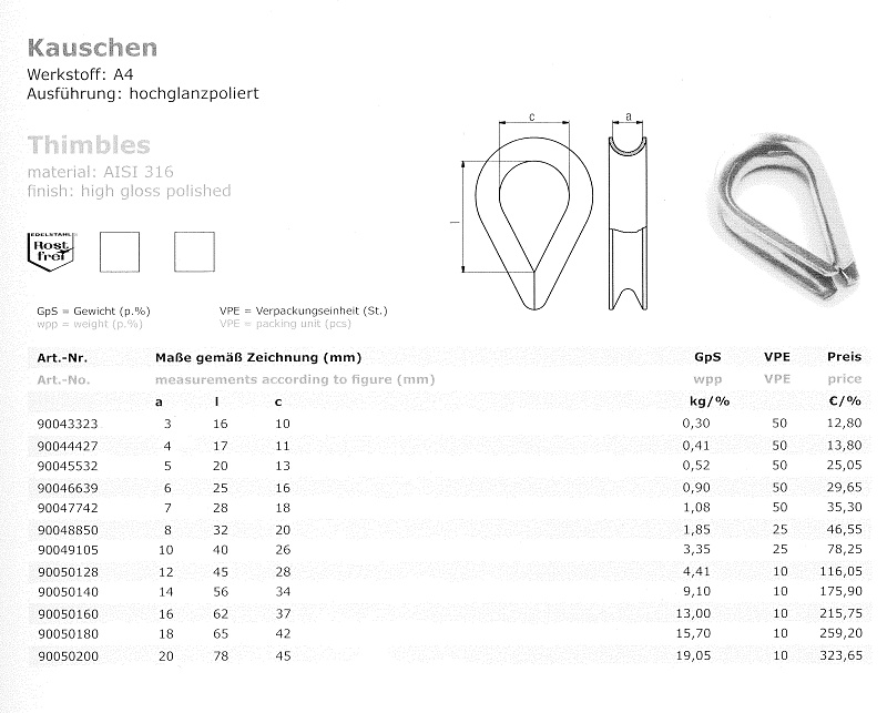 LANA Beránek > Katalog > Příslušenství pro lana > Očnice > Očnice nerez